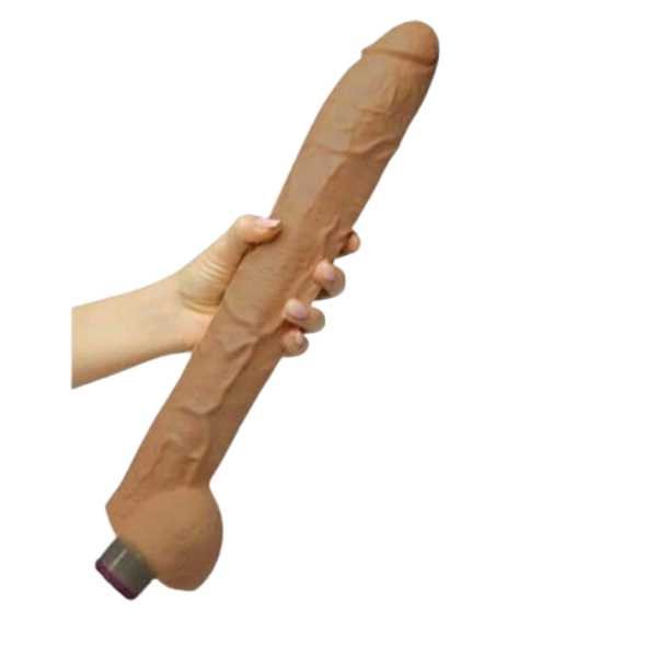Pênis Gigante De Borracha Vibração e Escroto Penetráveis 35cm x 6cm Rambone. Com vibração com controle de intensidade. Em silicone (borracha) macio e realístico com veias aparentes. Ideal para brincadeiras eróticas quando sozinho(a) ou acompanhado(a). Tenha muitos orgasmos e prazer com esse pênis de borracha com escroto e vibração.